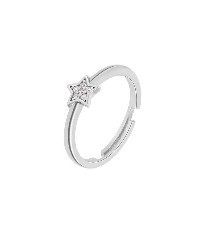 Anillo estrella circonitas. Plata de 1ª Ley rodiada. Circonitas en microengaste. Talla adaptable (Cerrado talla 8)