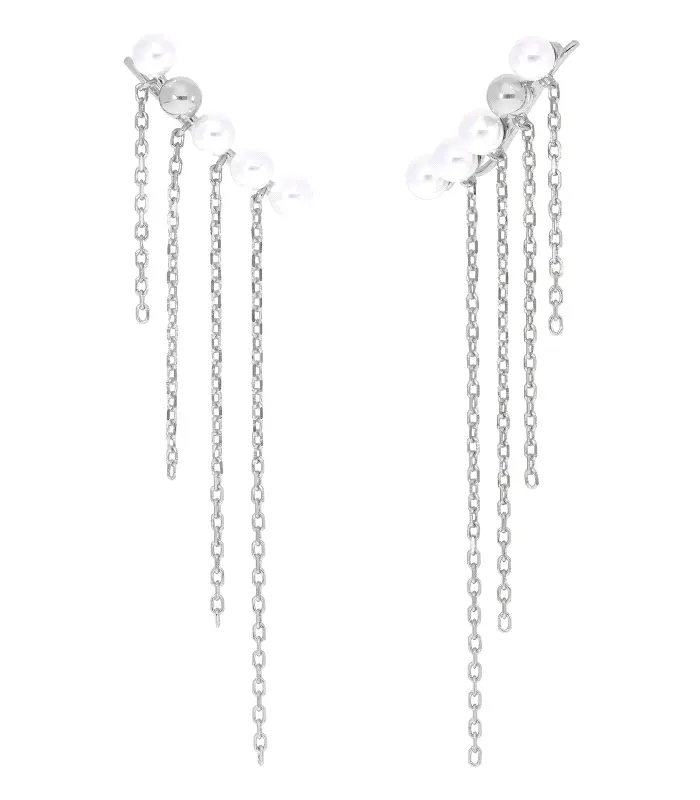 Pendiente trepador perlas cascada. Plata de 1ª Ley rodiada.