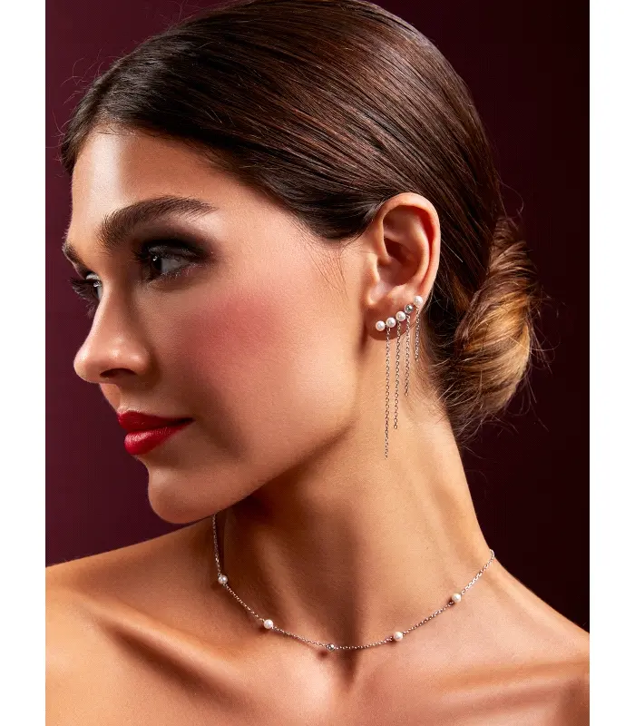 Pendiente trepador perlas cascada. Plata de 1ª Ley rodiada. Perla. . Cierre trepador. Colección Aire.