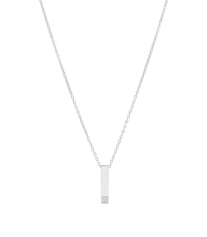 Collar barrita con circonita en talla princesa. Plata de 1ª Ley rodiada. Cierre reasa. Cadena adaptable.