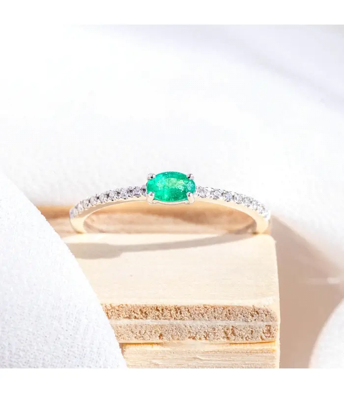 anillo oro 18k esmeralda 0.32ct y diamantes 0.09ct H-VS