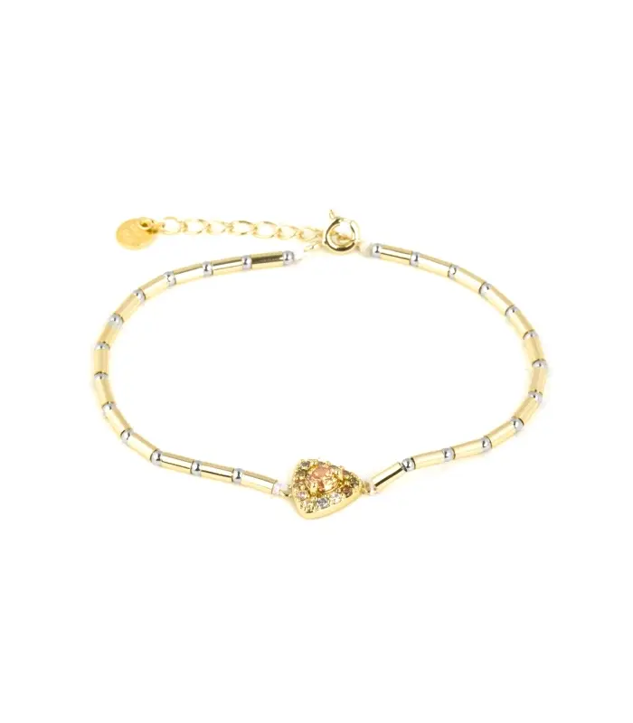 Descubra la elegancia sofisticada de la Pulsera Aldra, fabricada en plata de ley con un delicado acabado en oro amarillo. Esta pieza exclusiva cuenta con circonitas multicolor que aportan un toque vibrante y una piedra central color champán que realza su luminosidad. Su longitud de 16 cm, ampliable hasta 19 cm mediante extensión, ofrece un ajuste perfecto para cualquier ocasión. Ideal para quienes buscan un accesorio refinado que combine calidad y diseño experto.