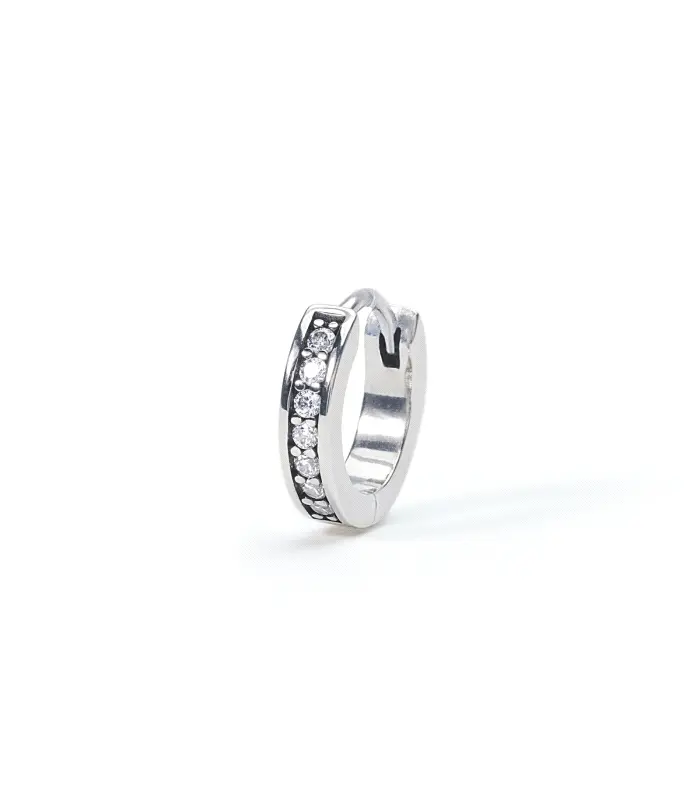 Pendiente de aro de plata rodiada con circonita blanca. (1 unidad)