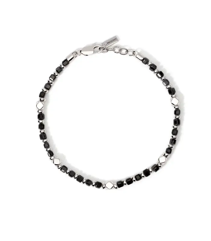 Pulsera de plata 925/ooo rodiada con cubitos de gata negra 3x3 mm y e