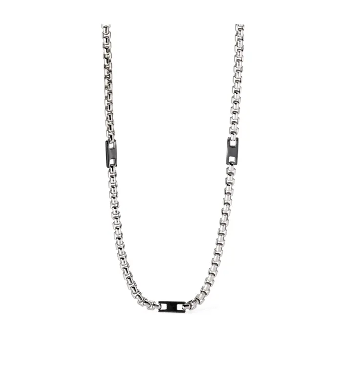 Collar para hombre de plata rodiada con cadena veneciana y elementos bruñidos. • Tamaño de los elementos: 9 x 2 mm • Largo: 50 cm • Cierre de mosquetón • Material: Plata 925