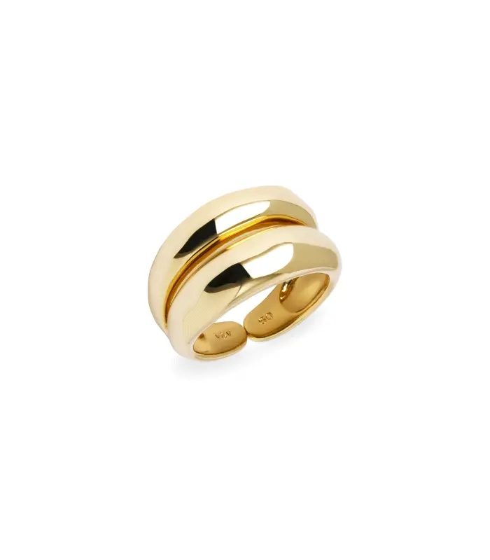 Anillo dúo Suspiro bañado con una gruesa capa de oro macizo de 18 kt, lo que garantiza una mayor durabilidad.