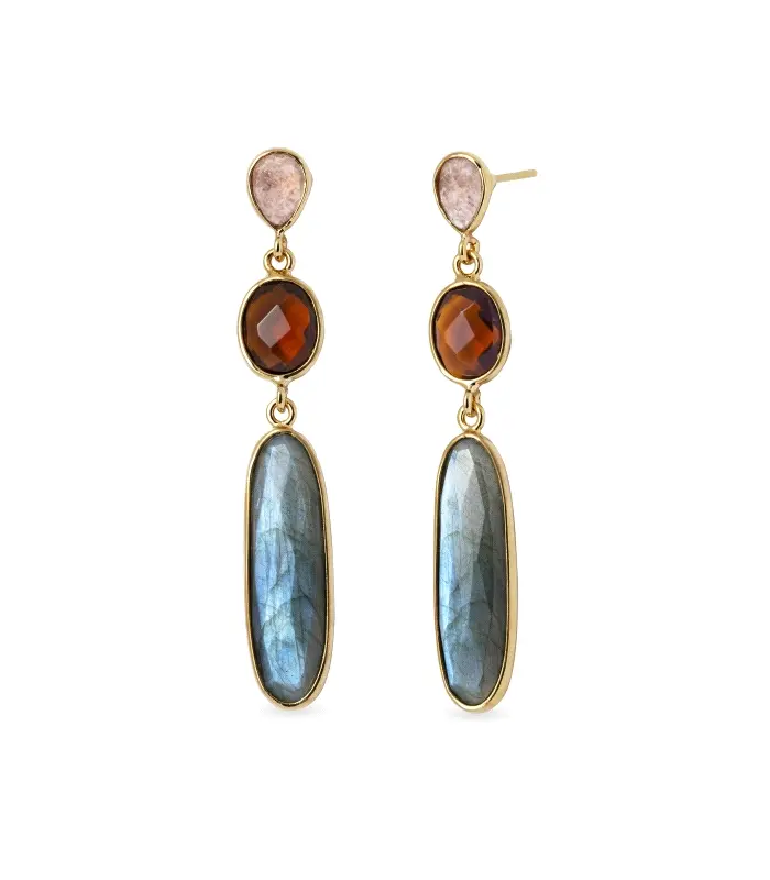 Pendientes largos Jara bañados con una gruesa capa de oro macizo de 18 kt, lo que garantiza una mayor durabilidad. Destacan por sus piedras semipreciosas Cuarzo Fresa, Honey Hydro y Labradorita en tonos cereza, azul, marrón. Tienen una medida de 58 mm y un cierre a presión. Pertenecen a la colección Gemas, una declaración de elegancia atemporal que celebra la sofisticación silenciosa de las piedras naturales: labradorita, piedra miel y cuarzo rosa. Sus tonalidades orgánicas como el gris tornasolado, dorado Pendientes largos Jara bañados con una gruesa capa de oro macizo de 18 kt, lo que garantiza una mayor durabilidad. Destacan por sus piedras semipreciosas Cuarzo Fresa, Honey Hydro y Labradorita en tonos cereza, azul, marrón. Tienen una medida de 58 mm y un cierre a presión. Pertenecen a la colección Gemas, una declaración de elegancia