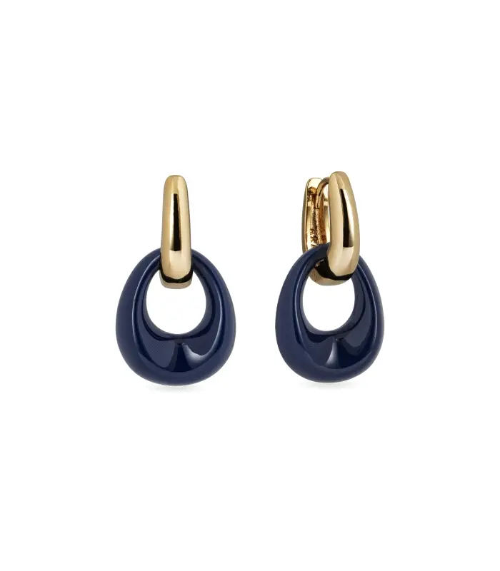 Pendientes de aro con oval Navy bañados con una gruesa capa de oro macizo de 18 kt, lo que garantiza una mayor durabilidad. Destacan por el acetato y resina en tono azul oscuro, que aportan un aire de sofisticación en clave neutra. Tienen un medida de 13 x 16 mm y un cierre de aro articulado. Pertenecen a la colección Bold, inspirada en las tendencias actuales, con joyas de diseño y siluetas renovadas para una línea que trae color, donde dominan los tonos camel, marrón, caramelo y azul oscuro. Son piezas quPendientes de aro con oval Navy bañados con una gruesa capa de oro macizo de 18 kt, lo que garantiza una mayor durabilidad. Destacan por el acetato y resina en tono