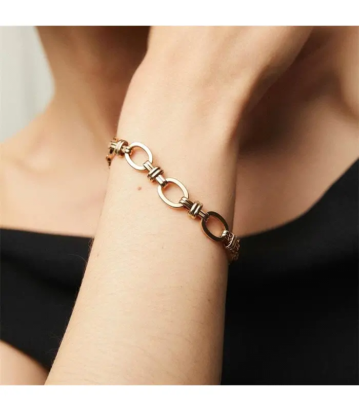 Pulsera Vidal&Vidal para mujer fabricada en aleación de metales bañados en oro amarillo compuesta por eslabones en forma ovalada. Su cierre es de mosquetón ajustable mediante cadena extensible.