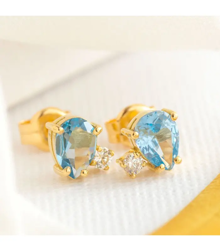 Pendientes Oro 18k , Topacio azul (talla lágrima 7x5mm) y circonitas.