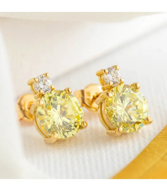 Pendientes fabricados en Oro 18k , Olivina (8mm) y circonita (3.5mm)