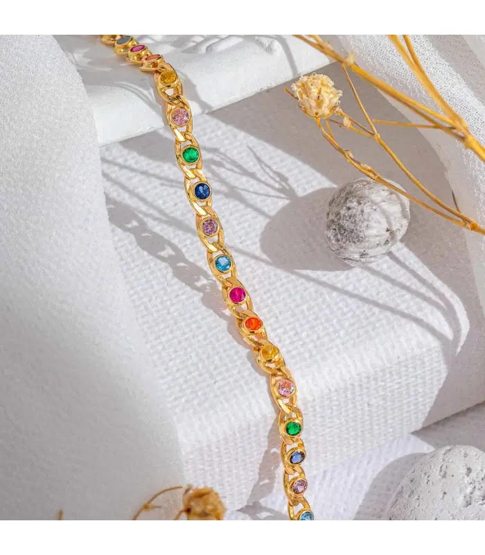 Pulsera Oro 18k y Circonitas de color