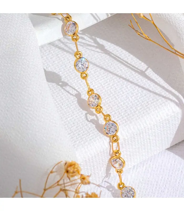 Pulsera fabicada en Oro de 18k y Circonitas de 3mm