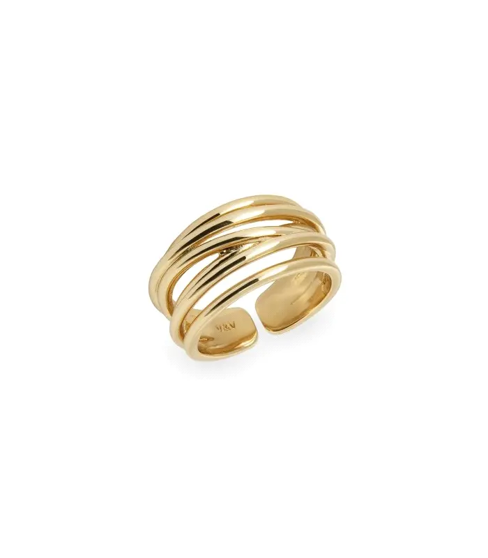 Anillo Vidal&Vidal Sira para mujer fabricado en aleación de metales bañados en oro amarillo compuesto por varias tiras. Acabado abierto por sus extremos. Talla 12-14.