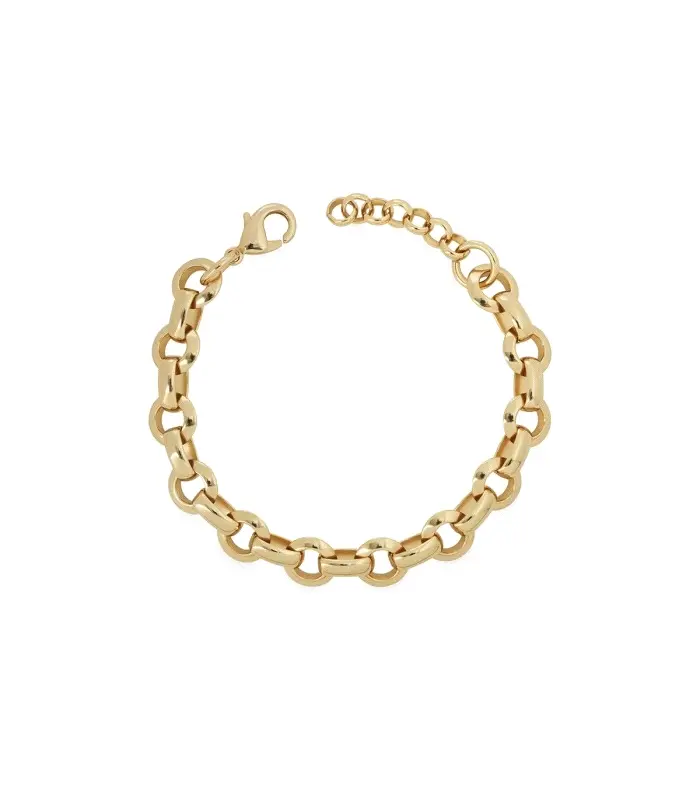 Pulsera Vidal&Vidal Astrea para mujer fabricada en aleación de metales bañados en oro amarillo compuesta por eslabones circulares. Su cierre es de mosquetón ajustable mediante cadena extensible.