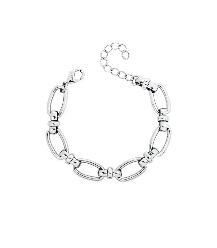 Pulsera Vidal&Vidal Orsula para mujer fabricada en aleación de metales bañados en plata compuesta por eslabones ovalados. Su cierre es de mosquetón ajustable mediante cadena extensible.