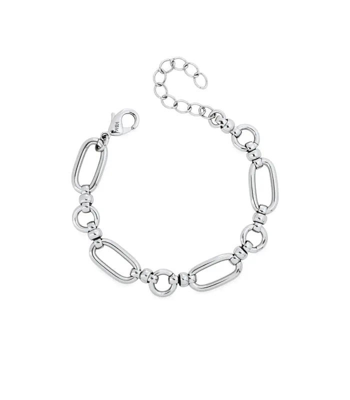 Pulsera Vidal&Vidal Clau para mujer fabricada en aleación de metales bañados en plata compuesta por eslabones ovalados. Su cierre es de mosquetón ajustable mediante cadena extensible.