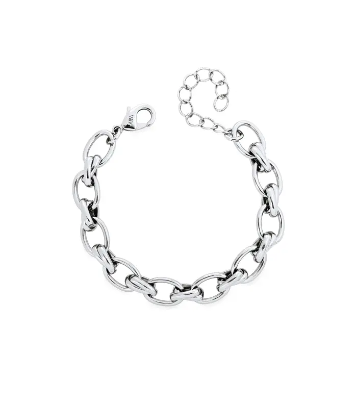 Pulsera Vidal&Vidal Relief para mujer fabricada en aleación de metales bañados en plata compuesta por eslabones ovalados. Su cierre es de mosquetón ajustable mediante cadena extensible.