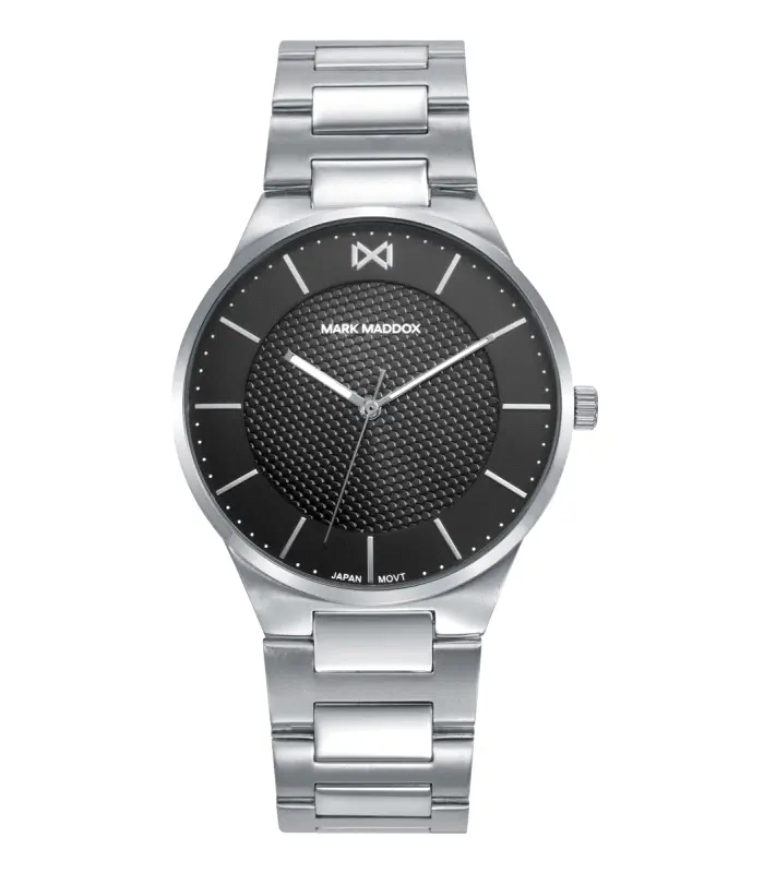 Con un aire moderno y refinado, este reloj de hombre presenta una caja y brazalete de acero que transmiten solidez y elegancia. Su esfera negra con índices y las agujas horarias en color plata garantizan legibilidad y precisión, mientras que el cristal mineral aporta resistencia. Una pieza versátil que se adapta con estilo a cualquier ocasión.
