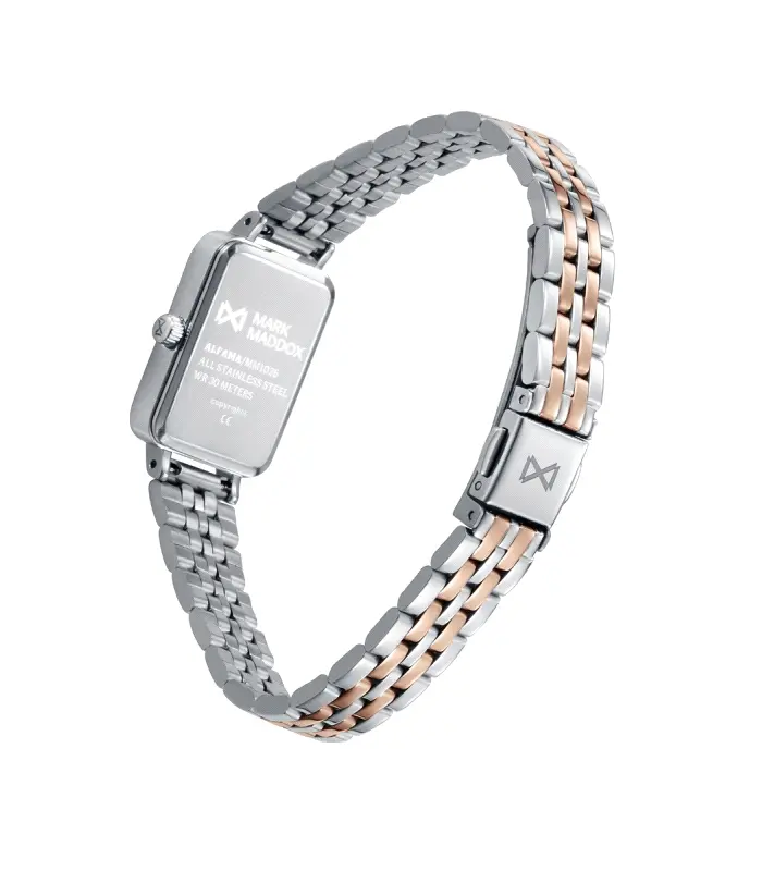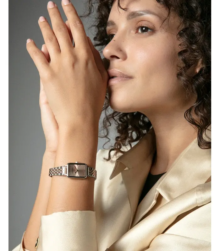 Este reloj de mujer de dos agujas destaca por su delicado y elegante diseño. La caja de acero se combina con un brazalete bicolor de acero e IP rosa, creando un contraste sutil y refinado. La esfera rosa, complementada con índices y agujas horarias en color rosa, añade un toque femenino y moderno al conjunto. Ideal para la mujer que busca un accesorio versátil y sofisticado, este reloj es perfecto tanto para el día a día como para ocasiones especiales, aportando estilo y distinción a cualquier look.